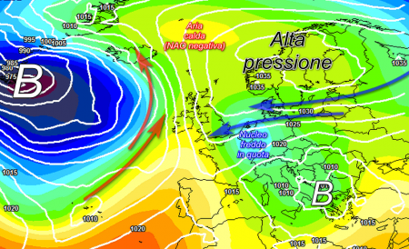 Tra venerdì e sabato, un flusso di correnti orientali fredde ed instabili conquisteranno agevolmente l’Europa, dando luogo ad un raffreddamento sensibile delle temperature in previsione su paesi come Olanda, Germania, Danimarca, nord Francia, sud Inghilterra. Su questi paesi saranno possibili le ultime nevicate tardive a bassa quota, forse anche in pianura. La previsione deterministica del modello europeo riferita a sabato 13 aprile, mette in luce questo corridoio di correnti fredde continentali:
