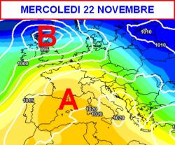 Questa situazione proseguirà per gran parte della settimana prossima, indicativamente tra martedì 21 e venerdì 24 novembre.