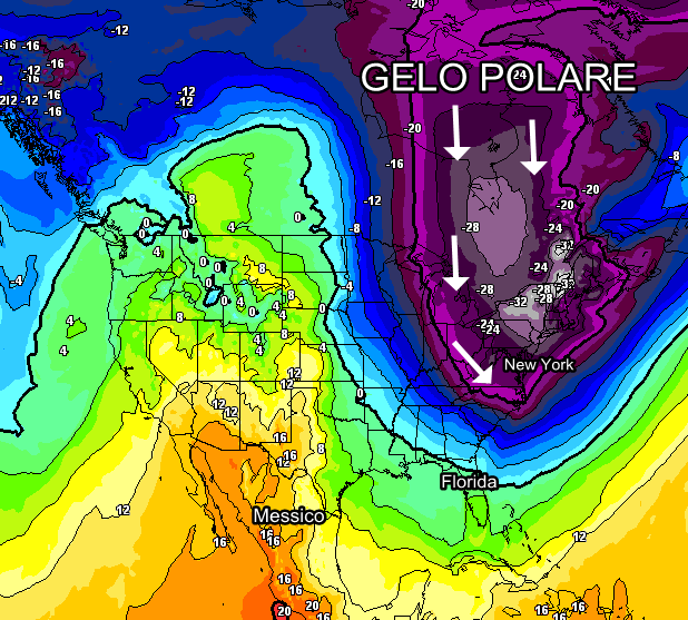 Il congelamento potrebbe accelerare nei prossimi giorni a causa della discesa di una nuova ondata di gelo polare, addirittura più intensa di quella in atto : questa possente irruzione gelida che si concretizzerà tra il 4 e il 6 gennaio potrebbe far scendere la colonnina di mercurio sin sotto i -20°C su New York e fin sotto i -40°C sulle vaste pianure tra nord America e Canada!