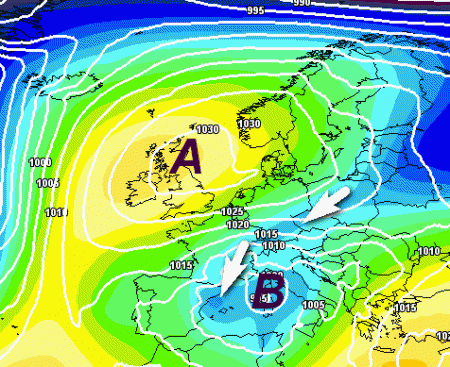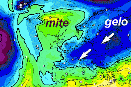Il vero dilemma resta l’interazione con l’aria fredda in discesa dal nord-est europeo lungo il bordo meridionale dell’anticiclone: il rischio è che al nord intervenga solo del freddo secco, senza che si possa originare un fronte occluso stazionario dispensatore di neve sul catino padano.