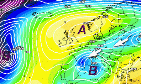 E’ confortante vedere nelle mappe che le regioni centrali, specie quelle tirreniche, le più assetate nell’area, potrebbero accumulare millimetri di pioggia importanti e anche generose nevicate in Appennino, ma da qualche emissione, il nord appare ancora una volta ai margini, sempre con l’alta pressione che, pur da un quartiere generale relativamente lontano, qual è il Regno Unito, riuscirebbe comunque ad inibire con una zampata i fenomeni su questo settore del Paese, mantenendo basso il minimo depressionario in arrivo dall’Iberia.