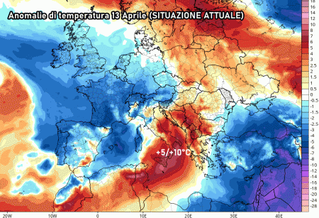 Tutto merito della depressione in formazione sul mar Ligure, responsabile dei rovesci e temporali in transito in queste ore tra nord e centro Italia. Questa depressione sta richiamando aria molto più calda dai quadranti meridionali, ragion per cui la colonnina di mercurio sta salendo quasi senza freni oltre le medie del periodo. Addirittura rileviamo, al momento, valori tra i 5 e i 10°C superiori alle medie di aprile!