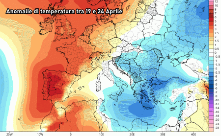 Anche tra 19 e 24 aprile non dovremmo vivere grandi impennate termiche. Le temperature sono attese leggermente sotto la media al sud, in media o appena sopra su centro e nord Italia. Insomma dopo l’attuale impennata dei termometri (fino a 8-10°C oltre le medie) ci sarà un nuovo crollo che ci riporterà sotto la media per diversi giorni.