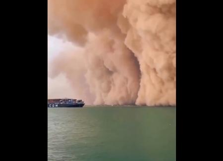 La tempesta di sabbia si è abbattuta con violenza anche nel Canale di Suez, causando disagi alla navigazione marittima. La Bbc ha pubblicato un video impressionante che mostra l’enorme nuvola di sabbia e polvere che avanza nel canale.