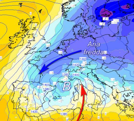 Nella seconda metà della settimana l’aria fredda artica riuscirà a spingersi verso l’Europa occidentale, conquistando in maniera più netta la Francia e la penisola iberica.