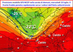 Il passaggio di questa perturbazione, porterà con sè un cospicuo "pacchetto" d’aria fredda, laddove alla quota di 500hpa (circa 5500 metri) viene stimato un calo della temperatura sino a 10°C, soprattutto sui settori dell’Italia settentrionale.