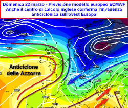 Nelle prossime ore un passaggio perturbato abbastanza intenso, coinvolgerà i settori centrali e settentrionali del Paese, strascichi di instabilità anche nelle giornate di lunedì 16 e martedì 17 marzo. In seguito sembra volersi riproporre una situazione di alta pressione sui settori occidentali d'Europa. Slitta avanti nel tempo la possibilità di avere un riassorbimento di questo pattern circolatorio.