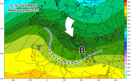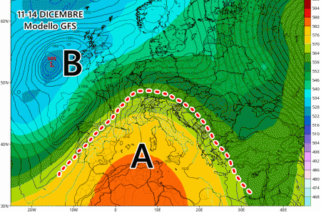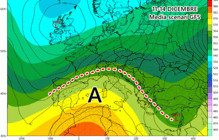 Una ripresa della corrente a getto in Atlantico favorirebbe il rinforzo improvviso della depressioni tra Islanda e Gran Bretagna, la cui diretta conseguenza sarebbe un rinforzo degli anticicloni sul Mediterraneo. Insomma tra 11 e 14 dicembre potrebbe tornare sul serio la stabilità, con temperature diurne un po’ più alte e tante nebbie o nubi basse a spasso per le pianure e le coste.