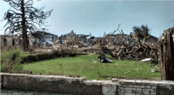 Ecco cosa rimane della villa: un nugolo di macerie! Nemmeno un terremoto avrebbe saputo fare di peggio.