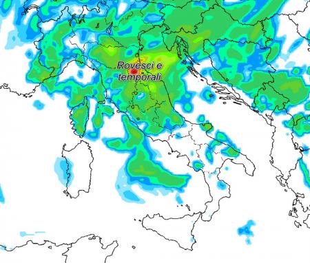 In particolare la fase di tempo più instabile per questo settore d’Italia sembra consumarsi tra la serata di giovedì 16 e la giornata di venerdì 17. La presenza del vortice freddo in quota a cavallo tra i Balcani e l’Adriatico settentrionale, renderà molto probabile il rischio di temporali su regioni come Veneto, Romagna, Marche, Abruzzo, Molise. Qualche rovescio di pioggia a breve temporale potrebbe interessare comunque anche le regioni di nord-ovest ed i versanti medio ed alto tirrenici. Sarebbero escluse dai fenomeni le due Isole Maggiori, e più in generale il sud Italia. Stima delle precipitazioni previste dal modello americano nella mattinata di venerdì 17: