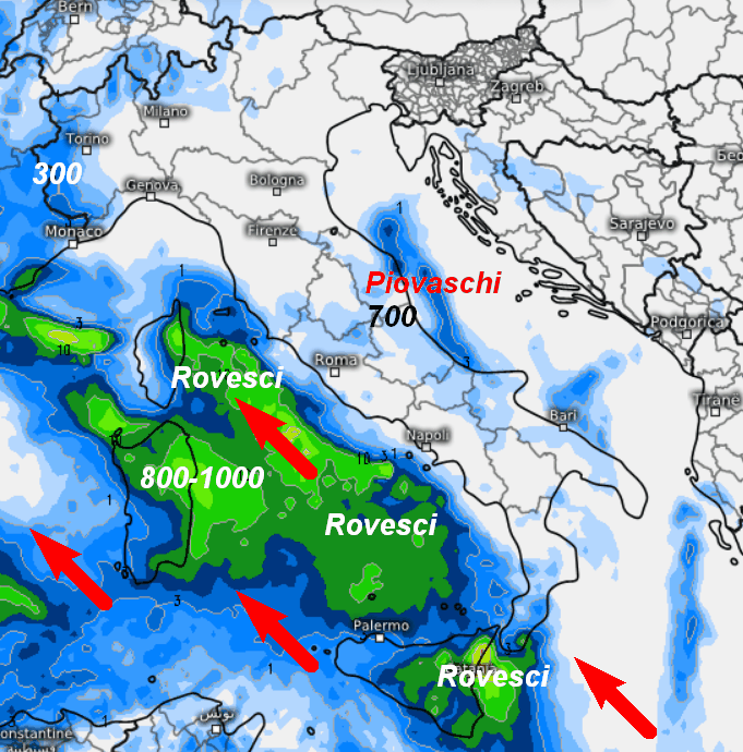 Questa invece è la sommatoria delle precipitazioni attese in Italia nell’arco della giornata di giovedi 11 gennaio: