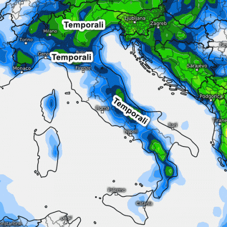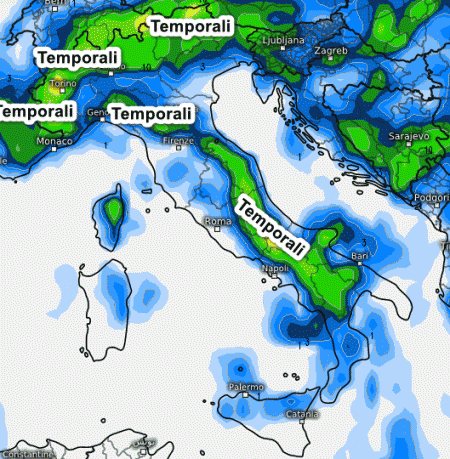 Tra mercoledi e giovedi i TEMPORALI insisteranno su…