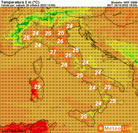 Queste invece sono le temperature attese in Italia nell’arco della giornata di sabato 29 ottobre: