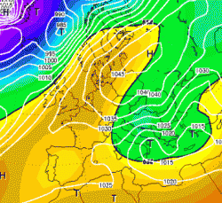 La situazione che vedete nella cartina a fianco riportata è perfetta per la neve sulle località sopra citate ed è molto simile a quella prevista tra giovedì 5 e sabato 7 gennaio.