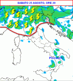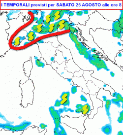 Tutti i TEMPORALI di SABATO 25 AGOSTO (le mappe)