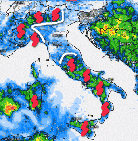 La aree che non avranno temporali saranno l’Emilia Romagna, il basso Veneto, la Toscana fino all’Umbria. Niente temporali anche lungo il versante adriatico. In queste regioni il tempo sarà quindi buono. Su tutte le altre regioni la mattinata partirà col sole. Il pomeriggio sarà invece decisamente più instabile con rischio di rovesci e temporali in parziale sconfinamento sulle pianure e lungo le coste del Tirreno.