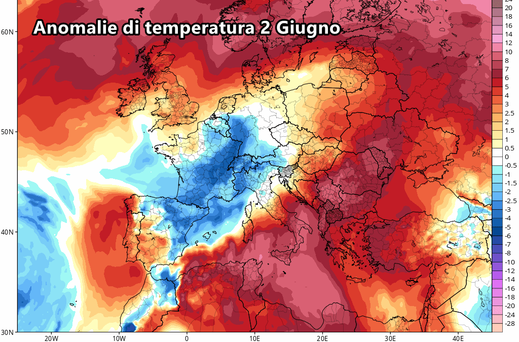 Un vasto nucleo d’aria fresca alle alte quote andrà a posizionarsi sull’Europa centrale, il quale sarà il diretto responsabile di un severo peggioramento sul Nord Italia sul finale di maggio, come visto in questo articolo. Successivamente, questa vasta saccatura fresca darà origine a un nuovo peggioramento a inizio giugno, ovvero durante il fine settimana.