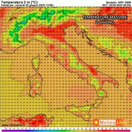 L’emissione del nostro modello mostra la presenza dell’instabilità pomeridiana relegata principalmente a monti e colline da nord a sud. Vi è anche presenza di isolati acquazzoni o temporali sulla Val Padana centro-orientale. Si tratterà di fenomeni isolati, come del resto sempre succede in presenza di temporali pomeridiani/serali. Sulle coste avremo tempo molto più stabile e soleggiato.