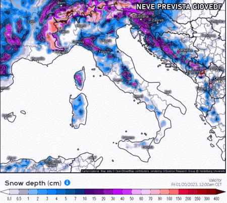 Il nuovo fronte freddo sta valicando il golfo di Leone e la valle del Rodano proprio da poche ore, ma gli effetti saranno evidenti principalmente giovedì 19 gennaio. La formazione di una depressione tra il mar Ligure e l’alto Tirreno favorirà precipitazioni abbondanti lungo gran parte del versante tirrenico e fenomeni anche sulle regioni nordorientali. Tuttavia dobbiamo tener conto dell’ulteriore calo termico e sarà proprio questo a rivelarsi determinante per l’arrivo della neve a bassissima quota.