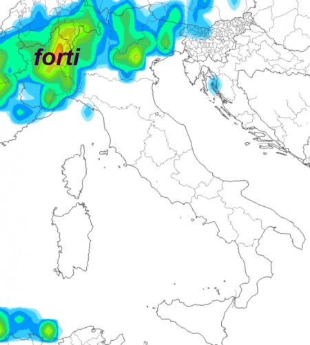 Venerdì 21 aprile le precipitazioni si concentreranno tra est Piemonte ed ovest Lombardia, risultando più intense a ridosso delle montagne: