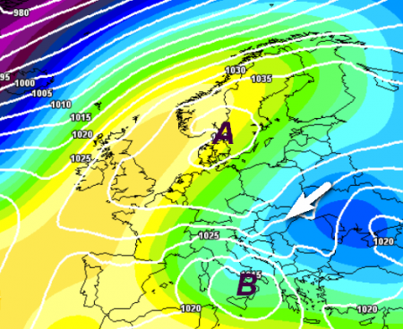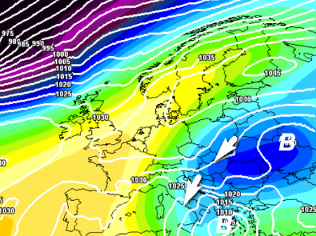 2 l’inserimento comunque di refoli freddi da est con regime anticiclonico di tempo discreto e il tentativo goffo delle perturbazioni atlantiche di interagire con questa massa relativamente fredda che andrebbe, tanto per cambiare, ancora a vuoto