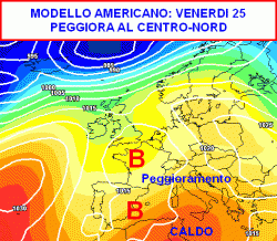 Sempre secondo il modello americano un peggioramento piovoso potrebbe intervenire al centro-nord verso la fine del mese ( venerdì 25, in particolare) ma ovviamente la distanza previsionale impone cautela.