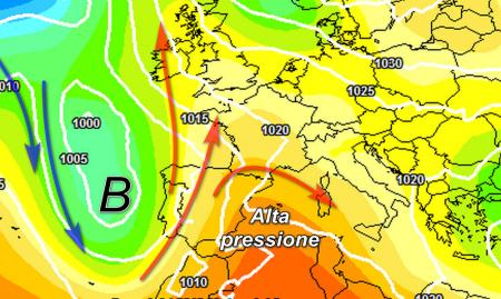 Al centro ed al sud la perturbazione giungerà accompagnata da temperature più elevate.