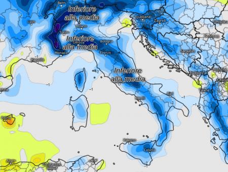 Un discorso a parte merita l’andamento delle temperature, le quali saranno soggette ad una diminuzione piuttosto sensibile sulle regioni del nord, dove la neve potrà cadere fino a bassa quota (fino a 800-900m sulla Lombardia).