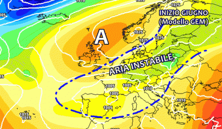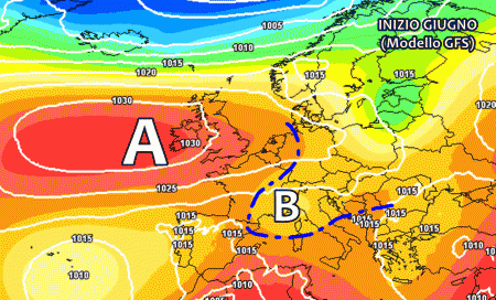 Negli ultimi aggiornamenti, tuttavia, questa tendenza ha cominciato a vacillare. Il leitmotiv degli ultimi due mesi potrebbe proseguire anche all’avvio di Giugno, pertanto dopo qualche giornata un po’ più calda potremmo nuovamente assistere ad un tracollo della pressione e all’arrivo di nuove incursioni fresche.