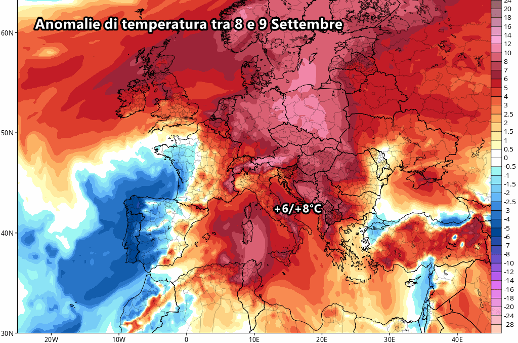 Ma ovviamente non è ancora certo questo nuovo incremento termico tra 8 e 9 settembre! Saranno fondamentali i prossimi aggiornamenti per inquadrare al meglio la posizione definitiva della perturbazione.
