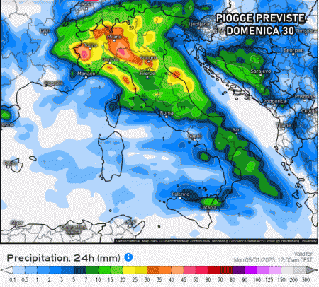 DOMENICA 30 Aprile il maltempo si intensifica. Piogge e temporali imperverseranno sul nord Italia, in particolare su Liguria, Piemonte, Valle d’Aosta, Emilia, Toscana e Lombardia. Fenomeni in estensione anche sul Triveneto e al centro Italia. Dei temporali saranno possibili anche nei settori interni del sud, ma su quest’ultimo punto sono necessarie ancora delle conferme.