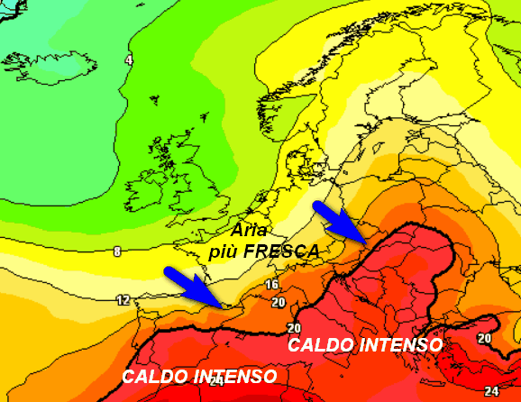 Il caldo resterà INTENSO solo sulle Isole e le estreme regioni meridionali. Sul resto d’Italia la forzata delle correnti occidentali dovrebbe introdurre condizioni di maggiore benessere con temperature decisamente più gradevoli, specie al nord.