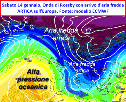 Weekend sabato 14 – domenica 15 gennaio: l’aria ARTICA irrompe sul Mediterraneo.
