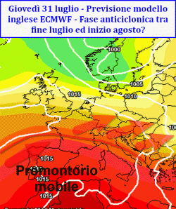 Si riconferma invece l’intervento di una fase anticiclonica nel periodo a cavallo tra fine luglio e l’inizio di agosto