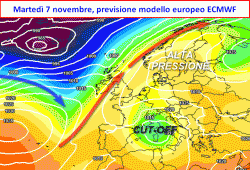 fredda. Tutto questo dovrebbe verificarsi approssimativamente dalla seconda metà della settimana per giungere alla formazione della nostra depressione ormai "matura" entro sabato 4 novembre, pronta a spedire verso il nostro Paese un corpo nuvoloso foriero di precipitazioni finalmente più organizzate.