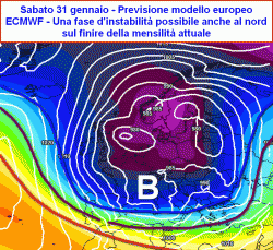 Un veloce peggioramento delle condizioni atmosferiche potrebbe intervenire sulle regioni settentrionali nella giornata di sabato 31 gennaio, mentre le giornate successive potrebbero proseguire sotto una ventilazione che a livello italiano risulterebbe prevalentemente settentrionale, portando condizioni abbastanza accentuate di freddo soprattutto al centro nord. L’instabilità tornerebbe ad interessare il centro sud, versanti adriatici.