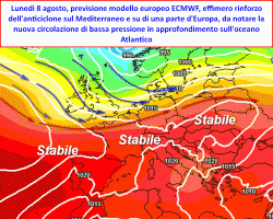 L’evoluzione successiva sarebbe invece caratterizzata da un nuovo cambiamento delle condizioni atmosferiche a partire dal nord, cambiamento portato da un secondo impulso perturbato in entrata sul bacino centro-occidentale del Mediterraneo. Stupisce la facilità con cui questi nuovi passaggi d’aria fresca ed instabile si farebbero strada alle nostre latitudini, senza che l’alta pressione possa opporre alcuna tenace resistenza.
