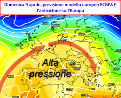 A partire dal fine settimana, sabato 8 – domenica 9 aprile, ecco farsi strada sui settori centrali del Mediterraneo, una figura di alta pressione che allontanerá dal nostro Paese le note di instabilità che invece saranno protagoniste del tempo previsto nell’immediato futuro.