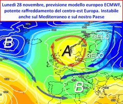 Medio e LUNGO termine: ancora tempo incerto sull’Italia, potente raffreddamento sul nord-est Europa.