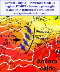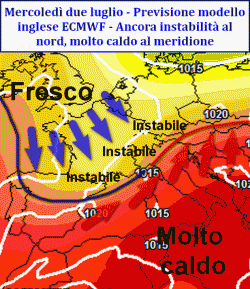 Il secondo mese di estate meteorologica sembra voler confermare quanto già discusso nei precedenti aggiornamenti; il territorio italiano diverrà area di scontro tra le depressioni di origine atlantica e l'anticiclone africano. Frequenti occasioni di instabilità governeranno il tempo delle regioni settentrionali mentre il mezzogiorno d'Italia potrebbe sperimentare temperature molto elevate.