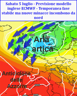 L’anticiclone delle Azzorre tenderebbe infatti ad estendersi dalla Penisola Iberica sin verso i settori centrali del Mediterraneo, portando valori termici più gradevoli su tutto il Paese. La fase di stabilità portata dall’anticiclone oceanico sarebbe tuttavia messa in serio pericolo dalla presenza di una nuova, vasta circolazione ciclonica sull’Europa settentrionale, bramosa di estendere la propria influenza a latitudini più basse.