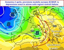 Relativamente alla prima decade di aprile, si prospetta ancora un periodo di forte dinamicità atmosferica, con una circolazione ancora fortemente condizionata dagli scambi meridiani in grado di mettere in gioco contrasti accesi anche tra masse d’aria molto diverse tra loro. Il centro di calcolo europeo (e la sua relativa previsione Ensemble) mette in evidenza nel periodo compreso tra martedì 5 e venerdì 8 aprile, una nuova depressione sui settori centrali del Mediterraneo, con maltempo ed instabilità diffusa a tutto il Paese, sebbene in un contesto termico ormai primaverile.