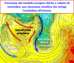 A livello sinottico, masse d’aria fredda di origine artico continentale, potrebbero approfittare della situazione, riversandosi dalla Russia bianca all’Europa occidentale ed in tal modo dando origine ad un disegno sinottico di pieno stampo invernale. Il modello europeo si spinge ancora oltre, ipotizzando persino la creazione di un canale basso atlantico che proietterebbe l’Europa in una fase di maltempo duratura