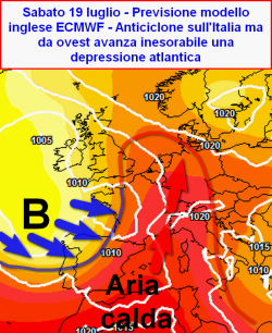 Il percorso intrapreso dall’atmosfera ormai sembra essere definitivamente tracciato, l’onda calda che interessa in questi giorni il Belpaese, in realtà non risulta altro che la risposta d’aria africana innescata dall’affondo ciclonico atteso domenica 20 luglio a partire dalle regioni settentrionali. Entro le prossime 24-36 ore assisteremo infatti ad un ulteriore afflusso d’aria calda alle quote superiori che limiterà ancor di più il fiorire dell’instabilità termo-convettiva pomeridiana lungo l’arco alpino ed appenninico. Sole e temperature calde domineranno le coste e le pianure, risultando localmente fastidiose. Si tratterà sostanzialmente di un fuoco di paglia, destinato a volgere al termine entro poco tempo, sotto l’incalzante spinta offerta da una vistosa figura di bassa pressione in movimento verso est.