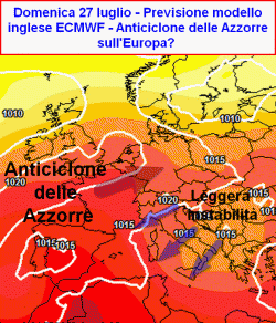 LUNGO TERMINE: sul finire di luglio il modello inglese pone risalto ad una possibile espansione anticiclonica di natura azzorriana verso l’Europa. L’atlantico furente di queste settimane verrebbe quindi soppiantato con gradualità dalla presenza di una modesta area anticiclonica che occuperebbe i settori europei occidentali e centrali. Sull’Italia prevarrebbe una circolazione settentrionale a debole gradiente, condizione atmosferica che garantirebbe tempo buono lungo le coste, le due isole maggiori e le aree di pianura. Temporali affollerebbero invece i rilievi montuosi (Alpi ed Appennino) durante le ore pomeridiane.
