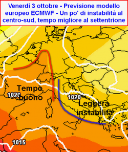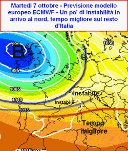 In seguito andrà avvicinandosi dall’oceano nord Atlantico, una vistosa figura di bassa pressione che sarà alimentata dall’aria fredda proveniente dalla Groenlandia. Con l’arrivo della prossima settimana questa figura di bassa pressione tenderà almeno in parte ad invadere il territorio italiano, portando nelle giornate di lunedì 6 e martedì 7 ottobre, un cambiamento del tempo sulle regioni del nord, con l’arrivo di qualche precipitazione e forse qualche isolato temporale.