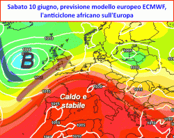 La prima fiammata rovente della stagione potrebbe essere destinata ad una conclusione abbastanza precoce, quantomeno sulle regioni settentrionali. Alle lunghe distanze previsionali viene infatti messo in evidenza un nuovo ribasso del flusso di correnti instabili oceaniche, con un nuovo, possibile impulso d’aria instabile spazzacalura mercoledì 14 giugno. L’attenuazione precoce dell’enfasi anticiclonica africana necessiterà però di ulteriori conferme, in quanto una volta consolidata, la tenacia di questa figura barica sul Mediterraneo è stata in grado di stupire anche noi "addetti ai lavori".