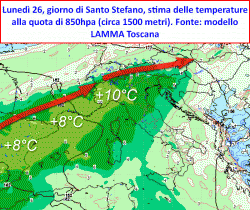 Con il rinforzo delle vorticità zonali sul nord Atlantico ecco farsi strada sull’Europa e sul Mediterraneo il rinforzo di una figura altopressoria che garantirà un periodo natalizio sotto condizioni atmosferiche tranquille. Una vera e propria "bolla" d’aria molto tiepida in quota sarà garanzia di condizioni atmosferiche estremamente stabili nelle quali nuvolosità e nebbie date dalle inversioni termiche avranno comunque modo di proliferare.
