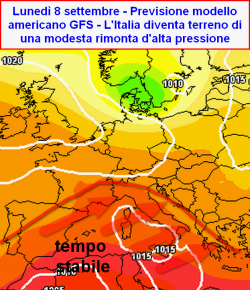 favorirà la generale attenuazione degli episodi d’instabilità ma in parte ne risentiranno anche le temperature al suolo che tenderanno ad aumentare soprattutto al centro ed al sud. Al settentrione l’accorciamento delle giornate ed il sole ormai sempre più debole limiterà questo aumento che in altro periodo dell’anno avrebbe potuto essere molto più accentuato. Il tempo sarà comunque soleggiato e gradevole su molte aree del Paese.