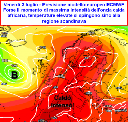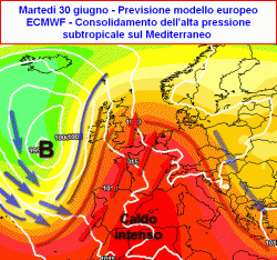 Una fase di declino dell’alta pressione potrebbe intervenire solo da domenica 5 luglio in avanti, attraverso una lenta erosione del colosso anticiclonico partendo dal suo margine più occidentale. (da confermare)